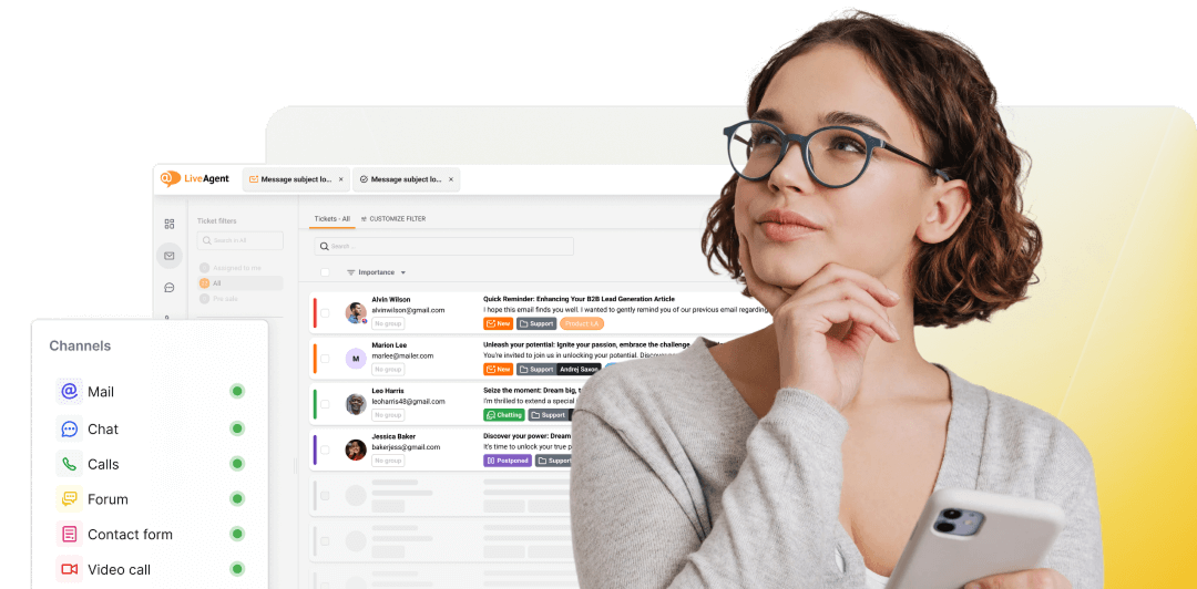 Utforsk LiveAgent's automatisering av samtalssenter for økt kundetilfredshet og agentarbeidsflyt. Fu...