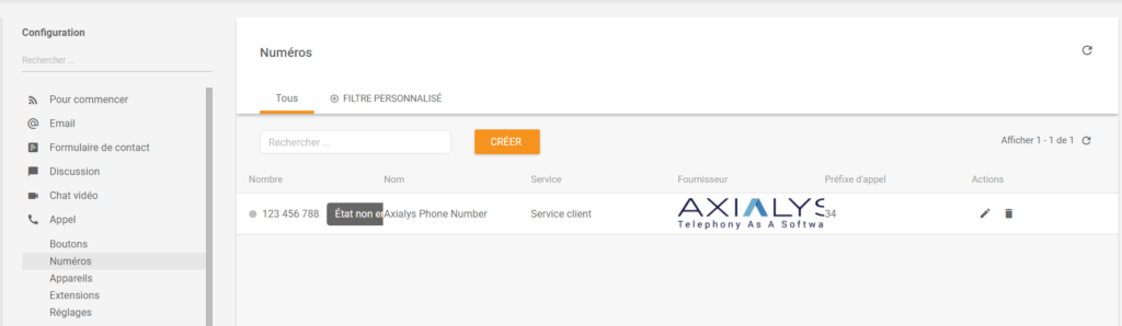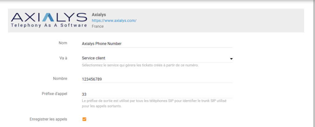Telefonnummeret er i LiveAgent og klart til bruk. Hvis du foretrekker det, kan du legge til flere Axialys-telefonnumre eller legge til numre fra andre VoIP-leverandører.