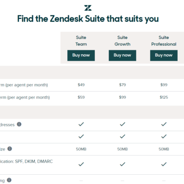 Fremover tilbyr Zendesk også en Suite Professional-plan for $99 per månedlig bruker. Det er en større forskjell i utvalget av funksjoner mellom denne og Suite Growth-planen, sammenlignet med Suite Growth- og Suite Team-planene.