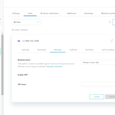 Du kan aktivere IVR for telefonlinjene dine under konfigurasjonen for hver telefonlinje. Denne menyen er lett tilgjengelig fra Talk-konfigurasjonen i venstre panel. Du kan knytte forskjellige IVR-oppsett til forskjellige telefonnumre.