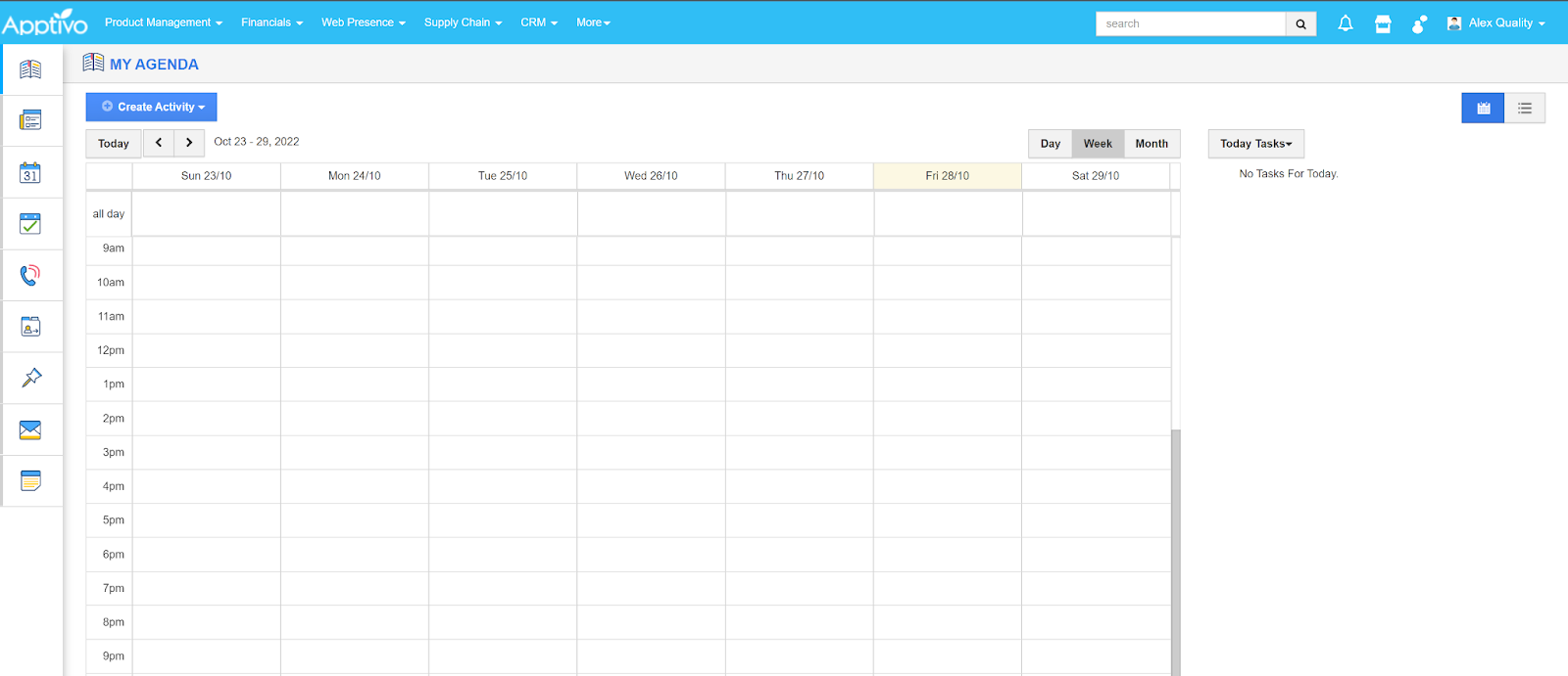 Jeg startet med å lage en gratis prøveversjon av Apptivos billigste Lite-plan. Det som overrasket meg mest er hvordan nettapplikasjonen prøvde å tvinge meg til en demosamtale i stedet for en prøveperiode. Det var imidlertid lett å overgå dette tiltaket ved å klikke på Prøv gratis-knappen igjen etter at jeg opprettet kontoen min. Jeg kom raskt til prøveversjonen av Apptivo nettapplikasjon og begynte å bli kjent med grensesnittet.
