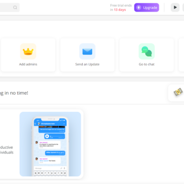 Grensesnittdesignen er utformet logisk og gir mulighet for intuitiv navigering, men noen ikoner kan virke litt utdaterte og må definitivt oppdateres. Uavhengig av dette ser og føles grensesnittet flott å bruke, noe som er prioritet for enhver programvare. Du har flere raske handlinger tilgjengelig rett på den innledende dashbordet, inkludert å sende oppdateringer, legge til brukere, starte chatter og lage skjemaer. Grensesnittet inkluderer hovedmenyen på venstre side, med alle verktøy synlige umiddelbart, slik at du ikke trenger å søke lenge for å komme dit du trenger. Du finner kunnskapsbasen under kommunikasjonsdelen i menyen.