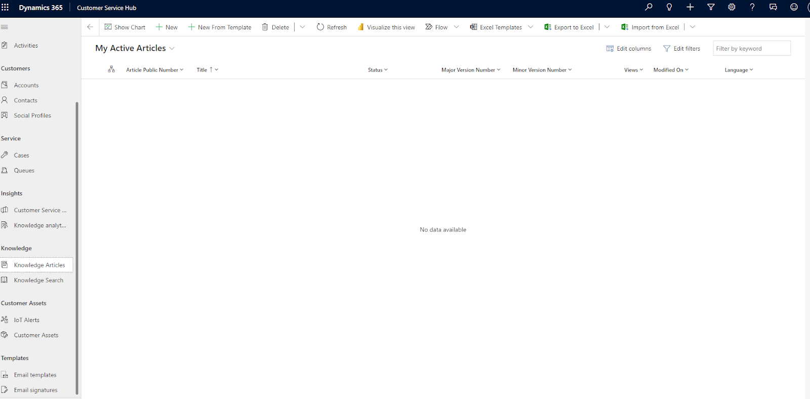 KbArticle-, KbArticleComment- og KbArticleTemplate-administrasjonsenhetene for kunnskapsbase er avviklet og er derfor ikke tilgjengelige. For å fortsette arbeidet ditt, gå videre til KnowledgeArticle-enheten.