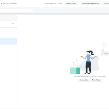 Her kan du redigere eksisterende mapper, eller opprette nye. Du har to mapper til å begynne med, men du kan legge til flere. Nå, for den viktigste delen, kan du begynne å skrive kunnskapsbaseartikler. For å gjøre det, trykk på Ny artikkel-knappen øverst til høyre.