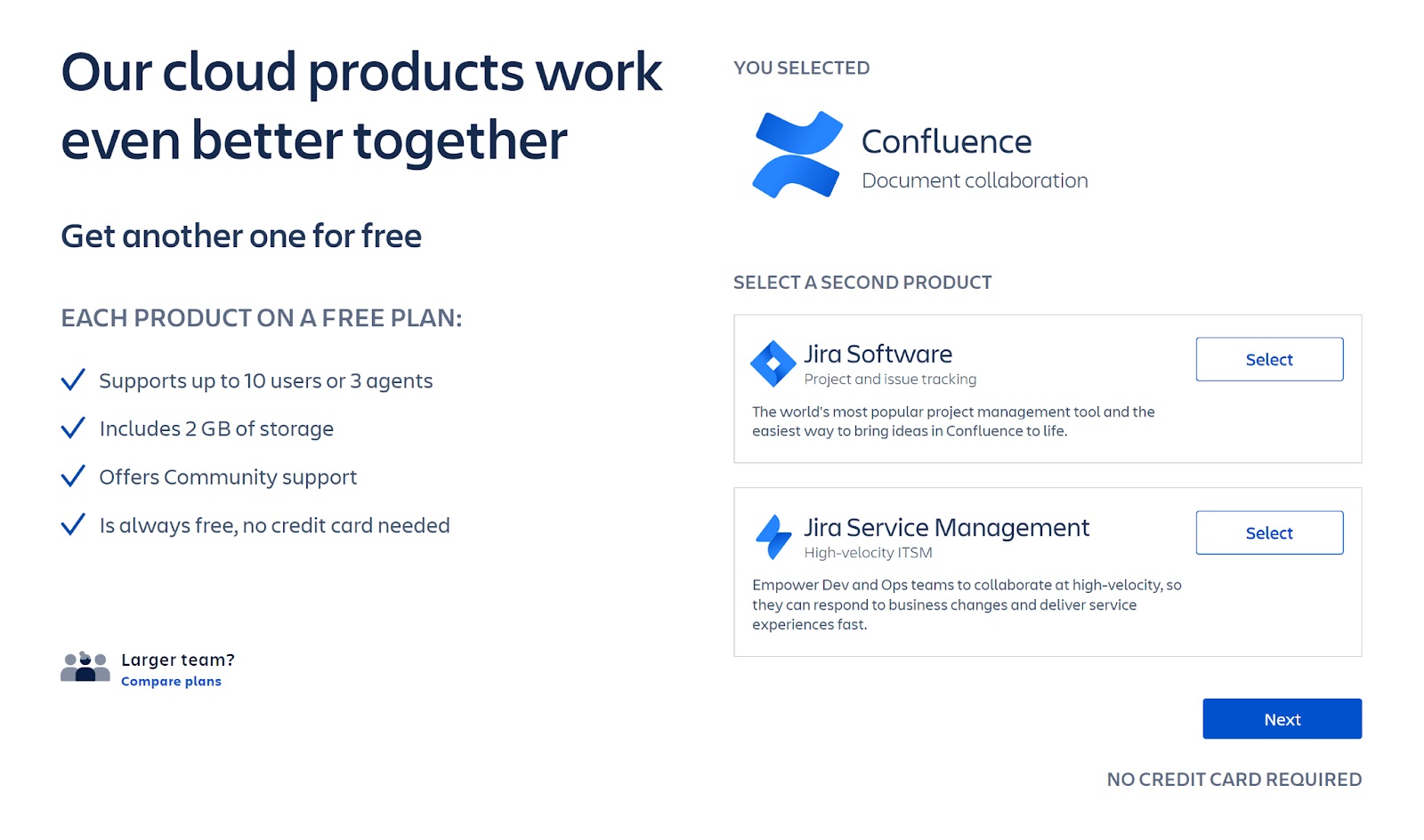 Jira Service Management drives av et annet Atlassian-produkt kalt Confluence. For å få kunnskapsbasen din til å fungere problemfritt, må du få en Confluence-konto. Du kan bli med i Confluence gratis uten noen betaling. Etterpå skal kunnskapsbasen din være oppe og fungere uten problemer.