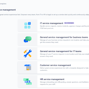 Den grunnleggende versjonen av Jira Service Management tilbyr et begrenset (men fortsatt ganske rikt) funksjonssett, og det er gratis, noe som betyr at du kan komme i gang uten å betale noe. Det kunne ikke vært enklere; Bare gå til Jira Service Management-nettstedet og fyll ut registreringsskjemaet. Du kan få tilgang til kontoen din på noen få minutter og begynne å surfe. Men først må du velge hvilken prosjektmal du vil bruke og legge til prosjektdetaljer i malen. Dette er ganske nyttig for å hjelpe deg med å velge de riktige verktøyene for jobben uten å surfe på omfattende applikasjonsbutikker. Kunnskapsbasen er en del av hvert prosjekt, så du vil ha den uavhengig av hvilken du velger.