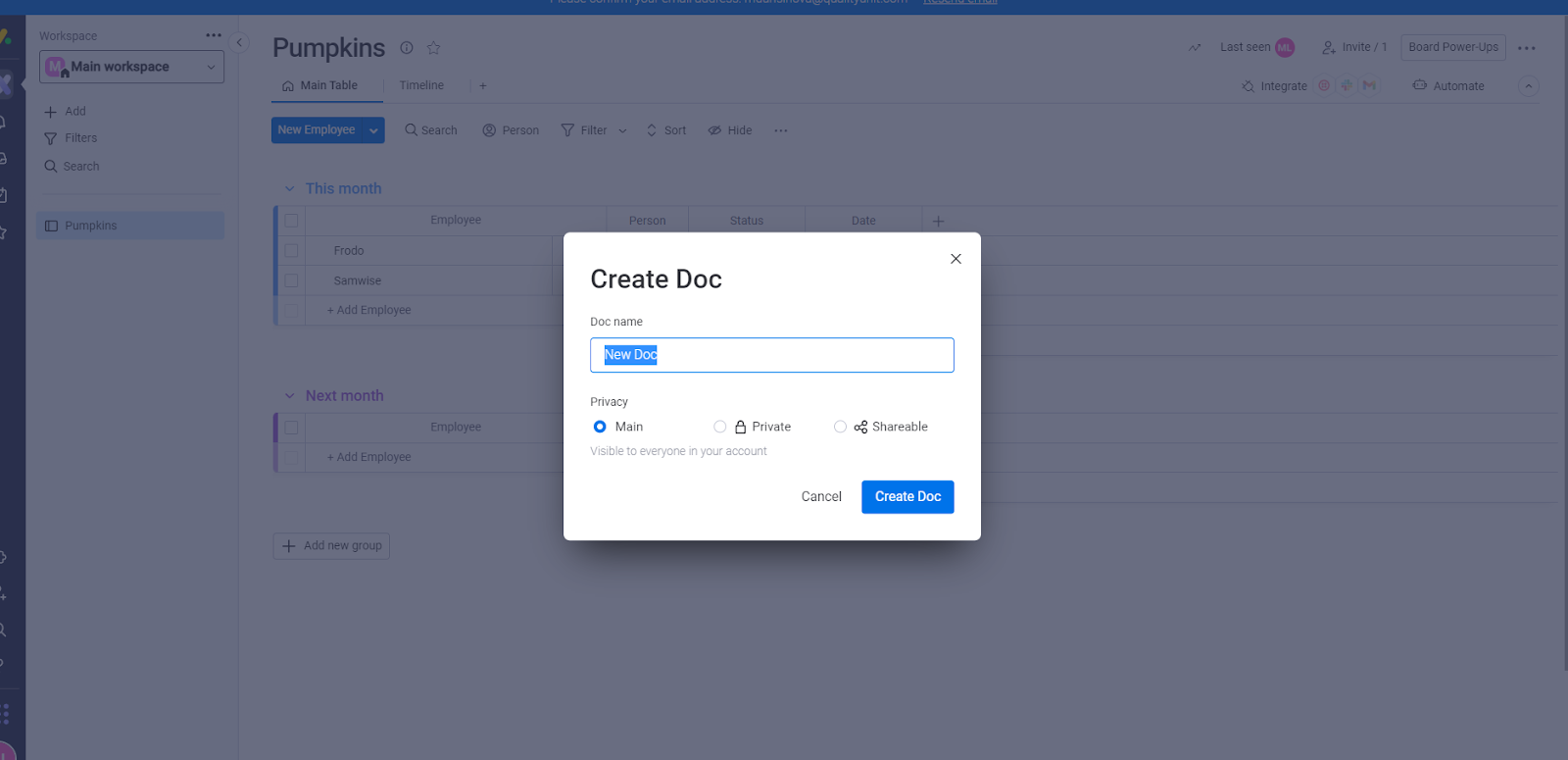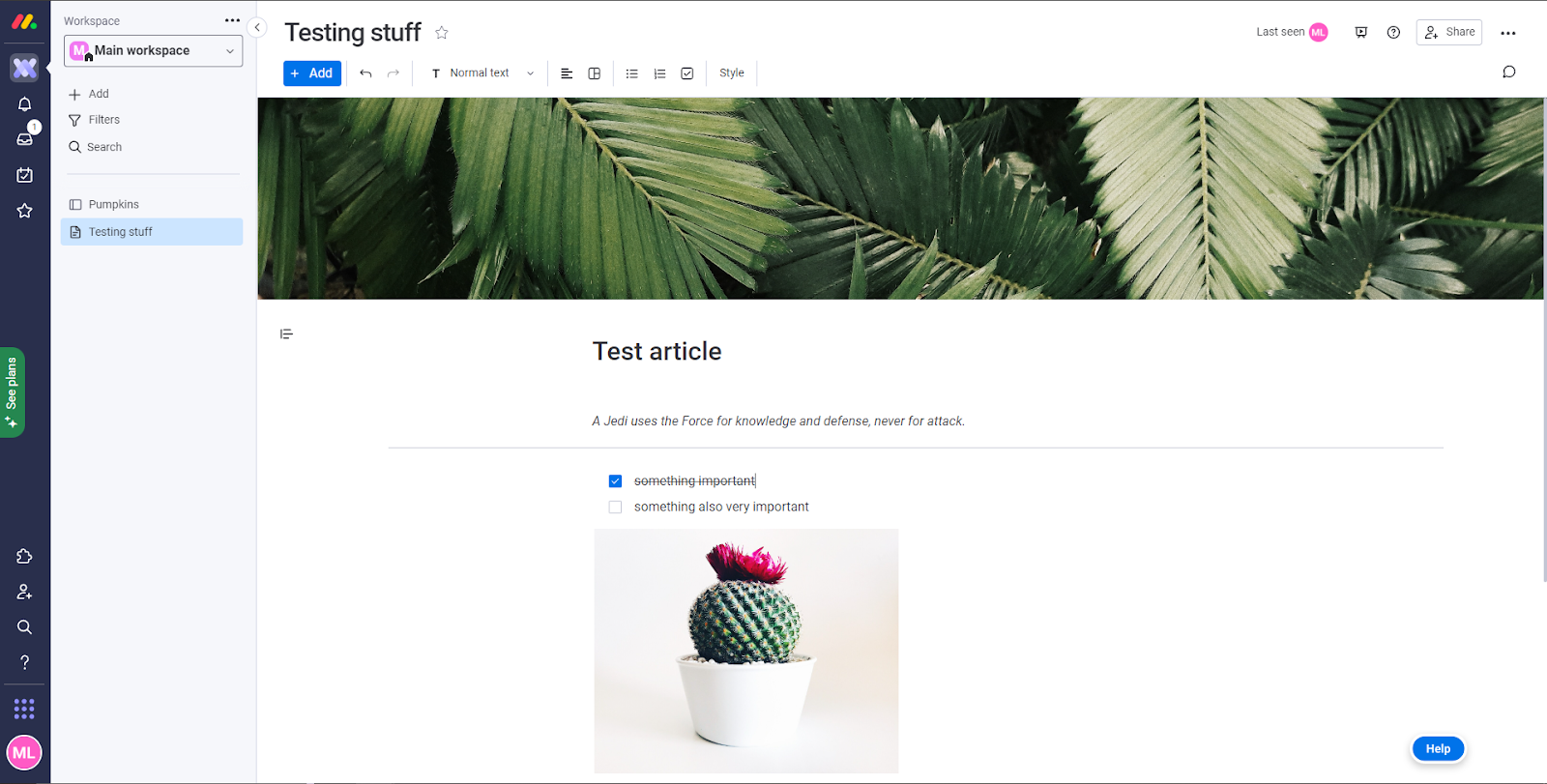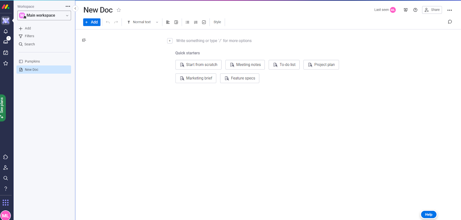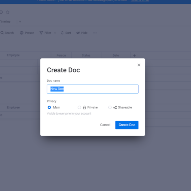 Monday.com lar deg lage et ubegrenset antall kunnskapsbaseartikler, selv i deres gratisplan. Du kan holde disse artiklene private eller dele dem med teamet ditt.