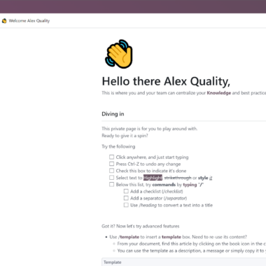Når du skriver i kunnskapsbase-editoren, kan du ganske enkelt trykke på “/”-knappen og få opp en liste over alle mulige funksjoner. Selv om dette ikke virket som den mest intuitive måten å jobbe på i begynnelsen, må jeg si at jeg ble vant til det veldig raskt, og jeg tør til og med påstå at det gjorde skrivingen min raskere i noen tilfeller. Jeg trengte aldri å se etter en spesifikk funksjon i menylinjer, all funksjonalitet kan hentes frem med et enkelt trykk på en knapp og jeg kunne når som helst skrive navnet på funksjonen jeg trengte, noe som også hjalp meg å holde fokus på skriving.