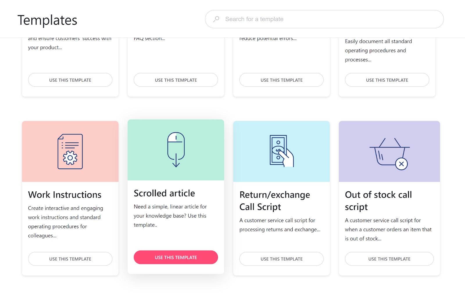 Det er ingen mulighet for å velge en tom mal i Stonly. Men med overfloden av malene de tilbyr, kan du vanligvis finne en passende. De fleste maler har også tilpasningsalternativer som lar deg endre artikkelstrukturen din.