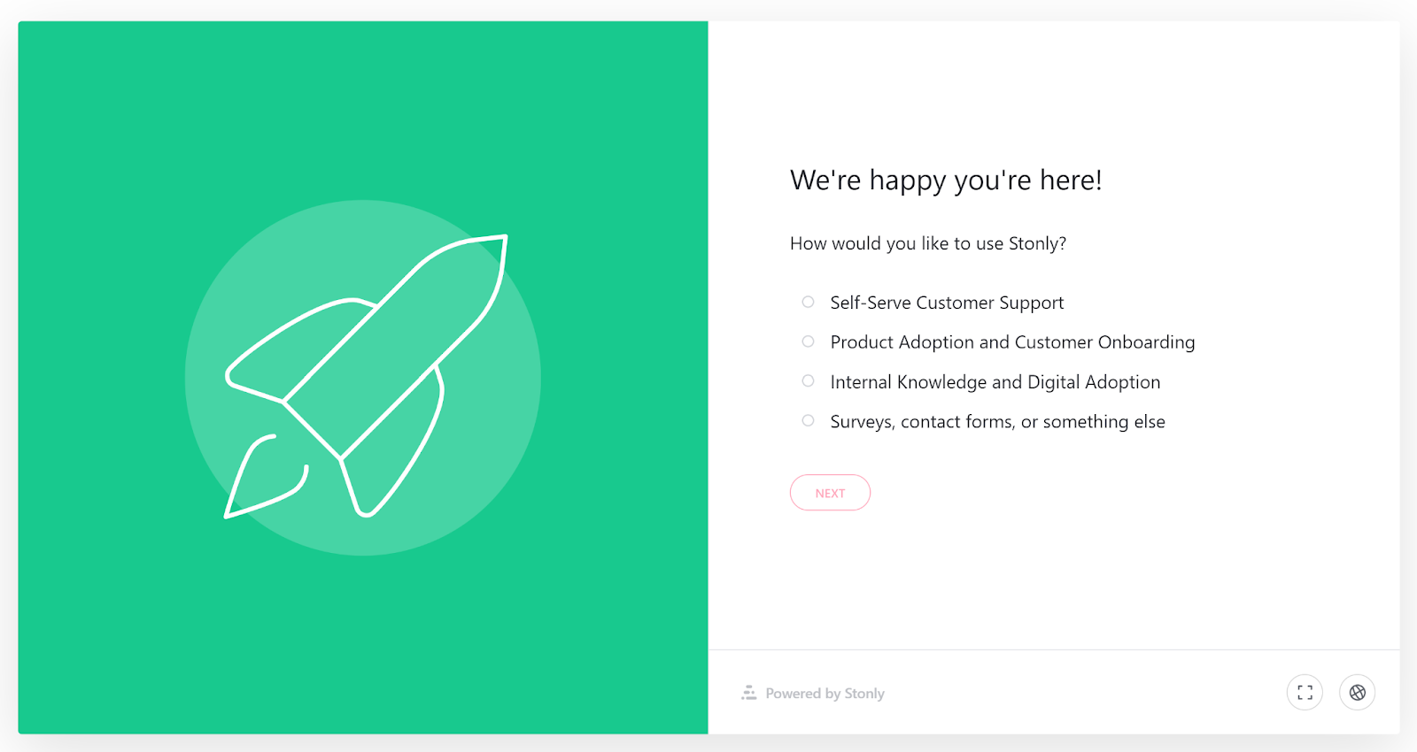 Hele Stonly-grensesnittet ser og føles veldig moderne og godt designet. Den nevnte guiden tar deg gjennom alt du trenger å vite og gjøre – steg for steg. Det er en ganske jevn prosess å gå gjennom, og det tar ikke for lang tid å fullføre. Det jeg setter mest pris på er at det er veldig lite rot som skjer, veiledningen er grei og erkjenner hensikten med hvorfor du bruker Stonly i utgangspunktet. Introduksjonen tar deg ikke sidelengs, og er alltid fokusert på det du trenger.