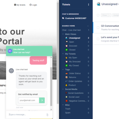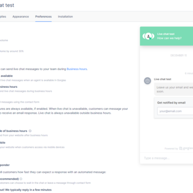 Selve live chat-widgeten fungerer utmerket. Den er rask og responsiv, så du trenger ikke å bekymre deg for lange ventetider på grunn av at programvaren din henger. Gorgias gjør en god jobb med å sikre produktivitet og minimere responstiden, siden den gir alt du trenger der i chattevinduet. Hvis du er villig til å overse at programvaren ikke lar deg forhåndsvise besøkendes meldinger før de trykker på send, kan Gorgias’ live chat-widget være en flott løsning.