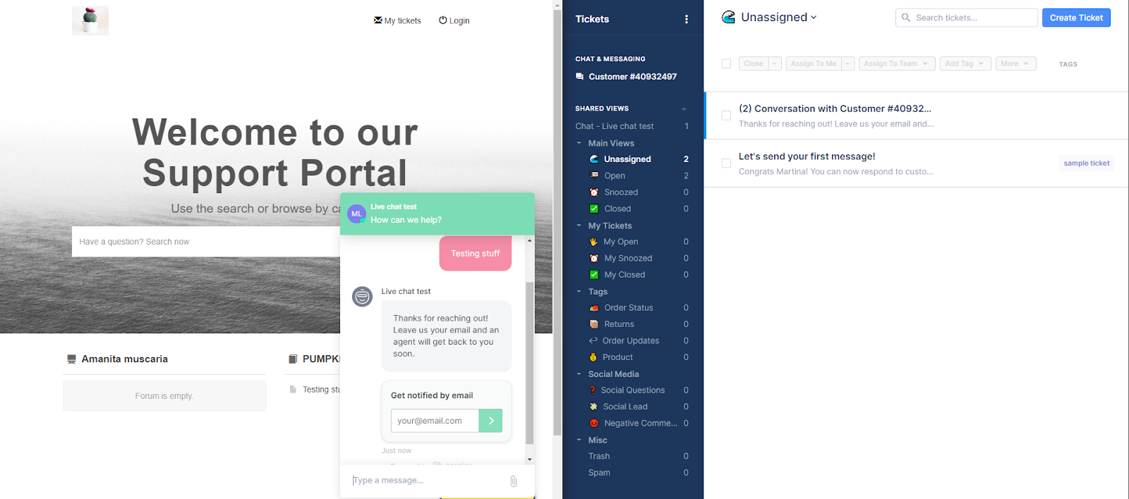 Jeg har hatt en ganske god erfaring med å jobbe med Gorgias. Brukergrensesnittet er enkelt å navigere. Den tilbyr en opplæring for å hjelpe deg med å komme i gang, og totalt sett er det ikke mye som mangler. I tillegg er hele systemet spesialdesignet for Shopify, så hvis du bruker det, kan du dra nytte av fullt integrerte Magento og BigCommerce.
