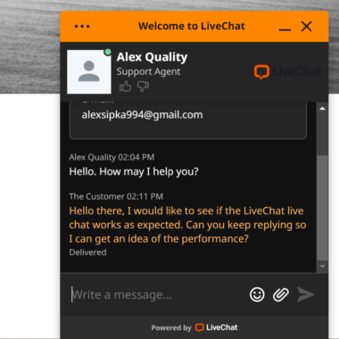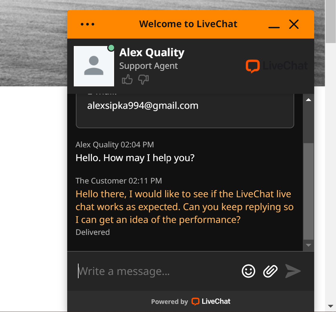 Totalt sett er ytelsen til LiveChat live chat-widgeten flott, og jeg har absolutt ingen klager på noen måte. Jeg opplevde ingen problemer med hastigheten, og det var heller ingen feil eller problemer. LiveChats widget er en sterkere utfordrer når det kommer til ytelse.