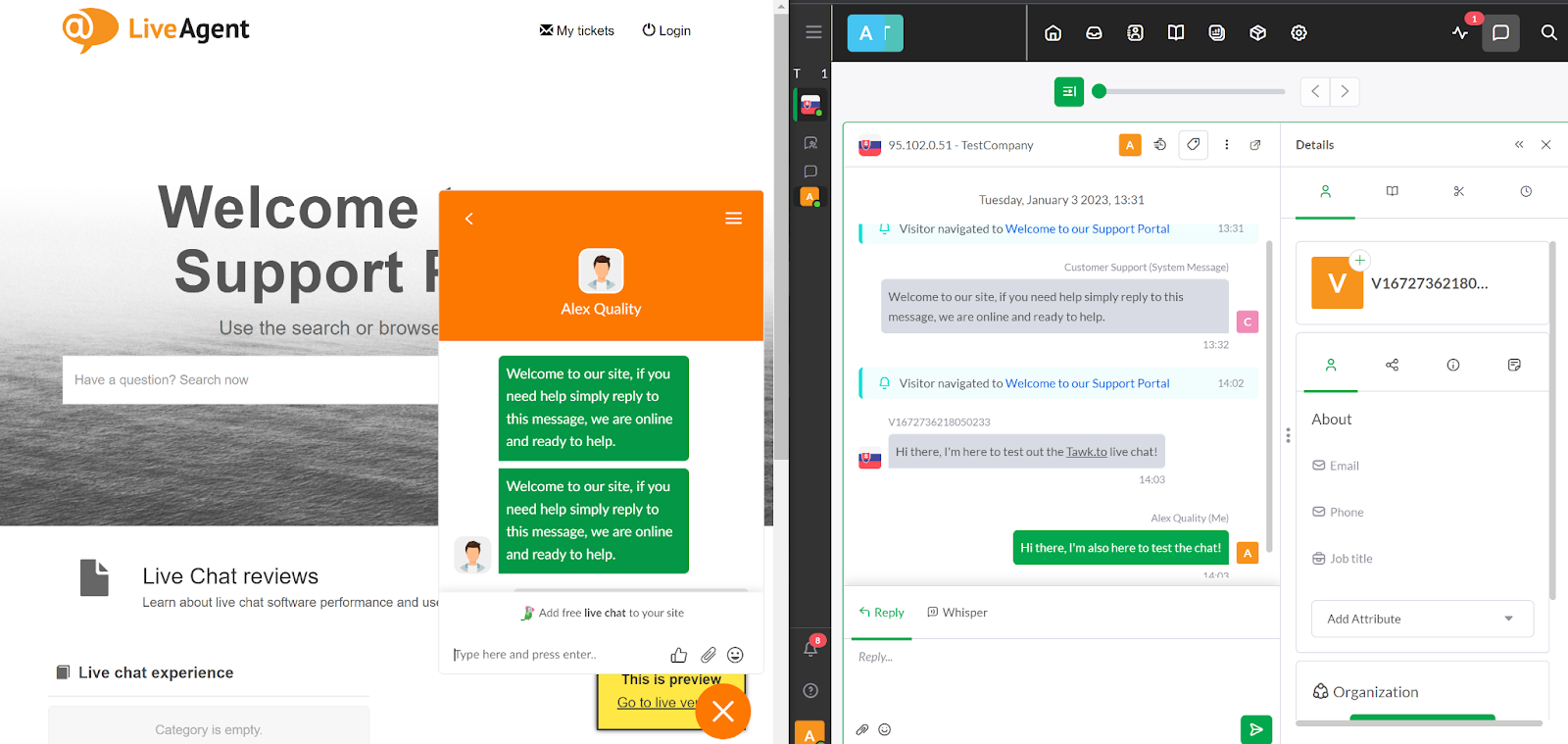 Tawk.to funksjonssett tilbyr mye mer enn det ser ut til ved første øyekast, så sørg for å sjekke ut alle innstillingene for å oppdage hver funksjon. Nå skal vi ta en titt på Tawk.to live chat og funksjoner i aksjon. Testen tar en titt på både kundeopplevelsen og agentopplevelsen med Tawk.to. Uten videre, la oss komme rett til det.