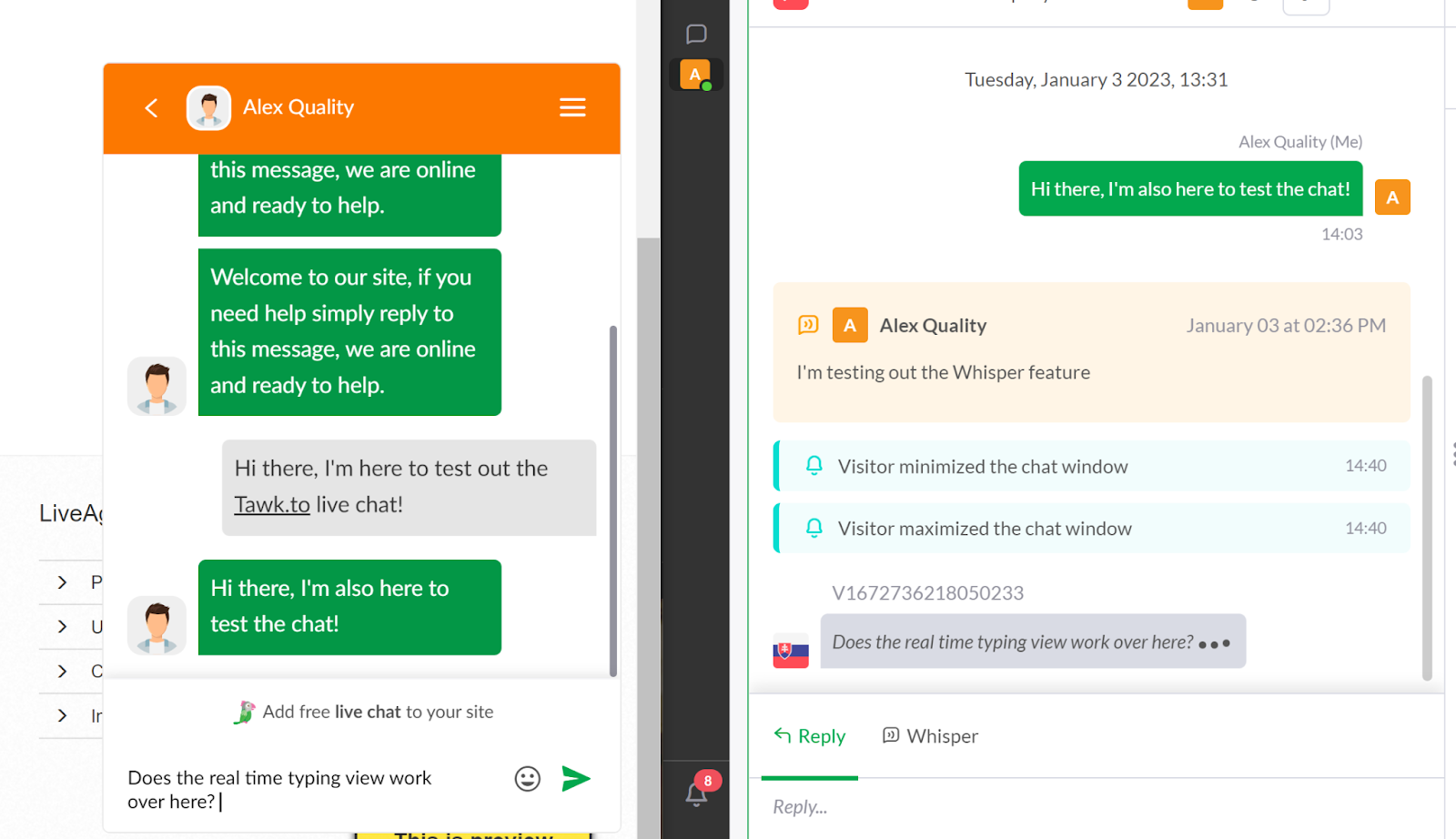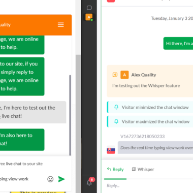 Tawk.to live chat gir deg beskjed om de fleste handlinger som kunder gjør under chatten. Du vil få et varsel når de minimerer eller maksimerer chattevinduet. Et overraskende, men veldig velkomment tillegg er skrivevisningen i sanntid. Selv om denne funksjonen er velkjent og ofte brukt i de fleste chat-programvare, er den ikke en standardfunksjon for hver av dem. Tawk.to er gratis og har det, noe som er ganske imponerende for å si det mildt.