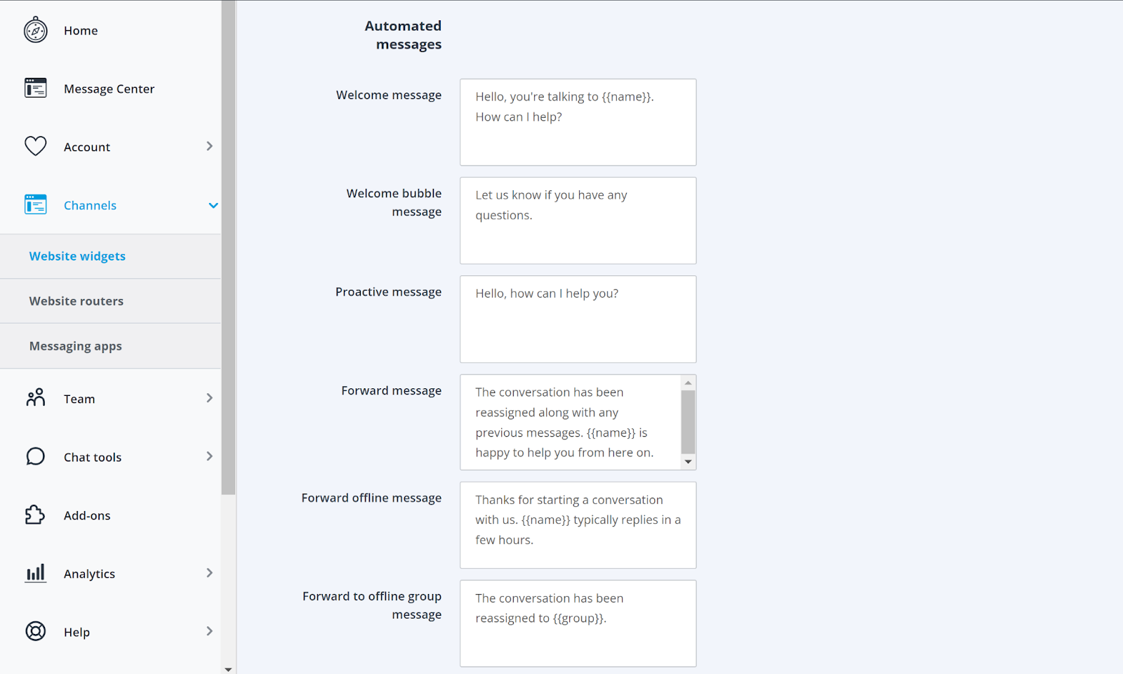 En annen funksjon som kan nevnes kalles Sticky chat, og det er en annen smart ruting-funksjon som kobler kunder til agenter de chattet med tidligere. Det gjør det lettere for agenter å huske kunden og informasjonen som utveksles under chatten. Deretter er det funksjonene for Smart kundeprofiler som automatisk bygger kundeprofiler hvis den besøkende på nettstedet som deltar i chatten din bestemmer seg for å gi deg en e-postadresse. Userlike støtter også en viss grad av automatisering der du kan tilpasse offline meldinger, velkomstbobler, videresende meldinger og mye mer.