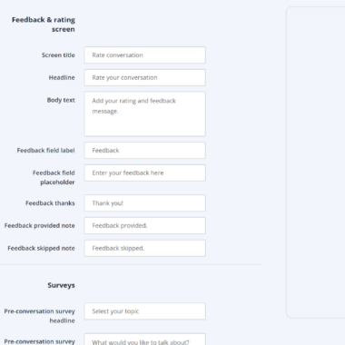 Tilpasningsalternativene er ganske brede. Det er generelle innstillinger, utseendealternativer, formuleringsalternativer for nesten hvert element i chatten, chatatferd og ruting, og mye mer. Det er ulikt noe jeg har sett så langt, selv om jeg ikke tviler på at det er mange andre chatløsninger med et så omfattende konfigurasjonsutvalg. Selv om det er flott å ha mange tilpasningsmuligheter, blir det litt kjedelig å gå gjennom dem alle, og jeg tror at noen av dem ikke er helt nødvendige for å være her. Uansett, jeg applauderer innsatsen.