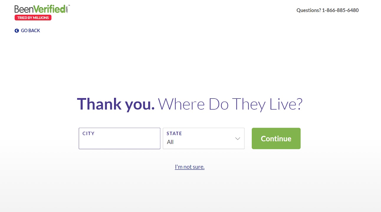Skriv inn et navn i søkefeltet under «People Search» og klikk «Søk». Etter noen sekunder vil BeenVerified be deg om ytterligere informasjon om personen du leter etter. Hvis du oppgir mer informasjon, for eksempel by og stat, vil BeenVerified kunne begrense søket for å gi deg mer nøyaktige resultater. Hvis du er usikker på hvor personen bor, kan du klikke «Jeg er ikke sikker».