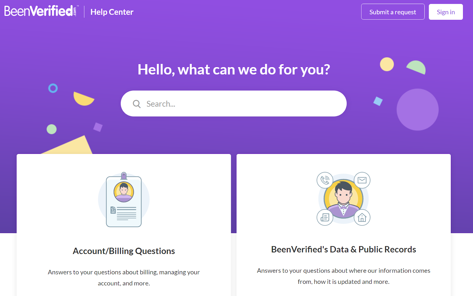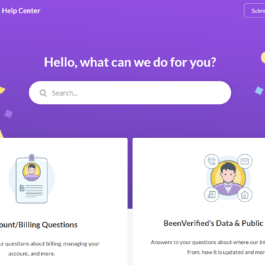 BeenVerified har sitt eget hjelpesenter hvor du kan søke etter svar på spørsmålene dine før du kontakter kundestøtteteamet deres. Du kan finne vanlige spørsmål om fakturering, kontoen din eller deres data og offentlige registre.
