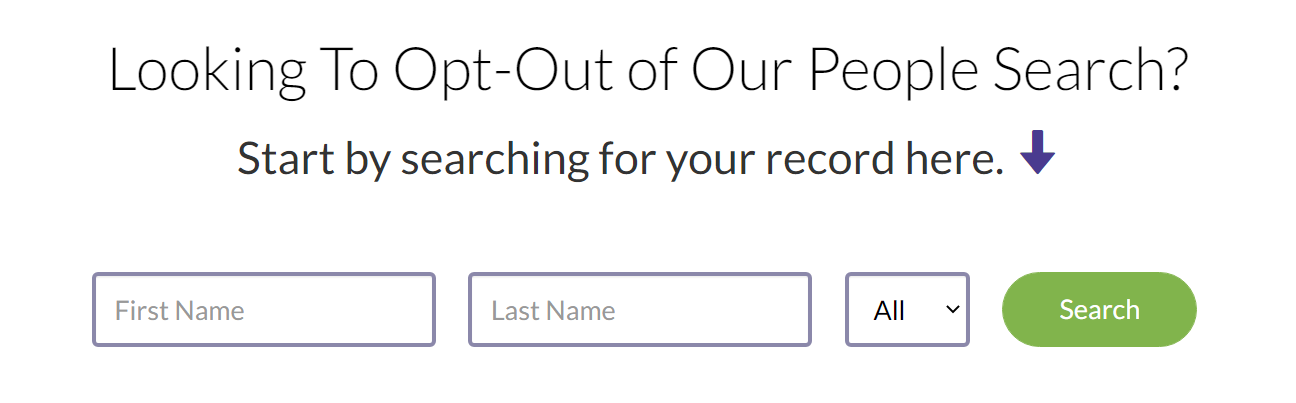 Du har muligheten til å velge bort BeenVerifieds People-søkeresultater. Prosessen er ganske enkel. Du trenger bare å legge inn informasjonen din i et kort skjema på nettstedet deres og velge hvilken post du vil at de skal fjerne. De vil sende deg en bekreftelses-e-post der du må bekrefte forespørselen om å velge bort. Etter det vil du motta en ny e-post som informerer deg om at posten er fjernet. Du trenger ikke å være en betalende kunde for å velge bort People Search og er gratis.