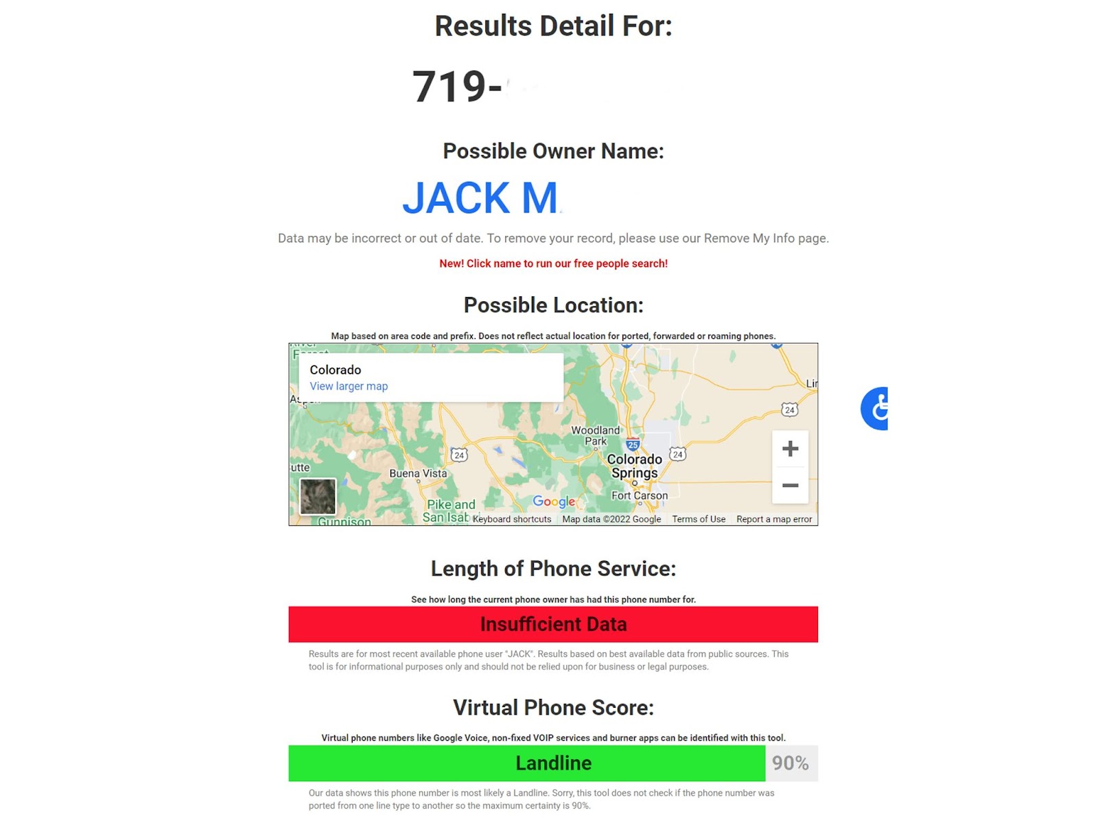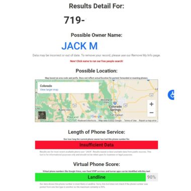 Basert på mengden data Spy Dialer har om en bestemt person og/eller organisasjon, vil du kunne se informasjon som navn på eier, mulig adresse som nummeret er knyttet til, og type telefonnummer (fasttelefon). , mobiltelefon, VoIP-nummer).