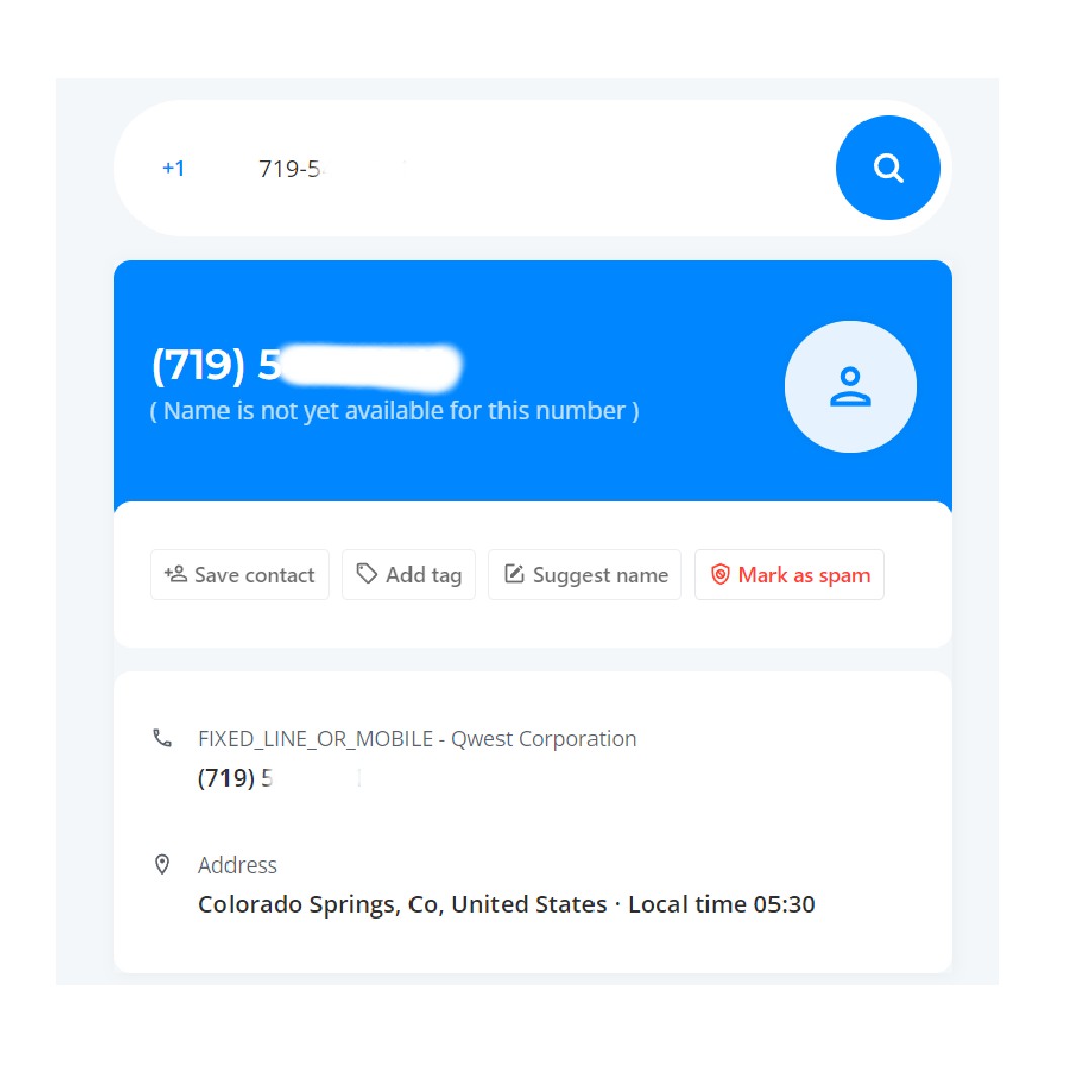 Informasjonen om det ukjente nummeret kan være svært begrenset. Det kan vise deg så lite som landet nummeret ringer fra, lokal tid i landet og teleoperatøren. Begrensningene kan variere avhengig av opprinnelseslandet til telefonnummeret og hvor mye offentlig data de kan samle inn fra det aktuelle landet.