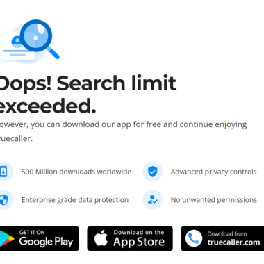 Truecaller har en søkegrense som bare lar deg søke i et visst antall numre fra nettsiden per dag. Etter det oppfordrer de deg til å laste ned mobilappen deres for å fortsette.