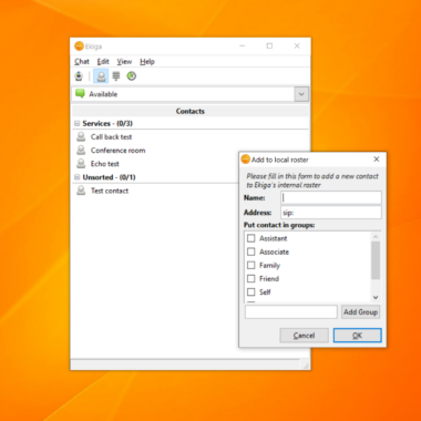 Kontaktalternativene inkluderer bare navnet, SIP-nummeret og muligheten til å legge til en kontakt i en gruppe. Du kan også legge til en ny gruppe. Det er ingen andre alternativer tilgjengelig, ingen måte å legge til ytterligere kontaktinformasjon, og ingen måte å legge igjen et notat eller en kommentar i kontaktdetaljene. Kontaktlisten kan definitivt bruke forbedringer for å holde tritt med annen softphone-programvare.