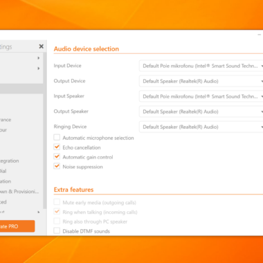 Du kan også finne innstillinger i den øverste delen. De inkluderer kontoadministrasjon og muligheten til å legge til flere VoIP-tjenester. En interessant funksjon er muligheten til å slå sammen alle kontaktene dine fra Outlook, Gmail, MacOS, Windows og mer til Zoiper-appen. Disse kontaktene synkroniseres regelmessig, så kontaktlisten din vil alltid være oppdatert. Resten av innstillingene fokuserer på lyd, video og app-atferd. Alternativene er veldig sjenerøse, og du kan tilpasse appen og samtalene dine på flere måter, noe som uten tvil er flott. Merk at de fleste av de avanserte konfigurasjonsinnstillingene ikke er tilgjengelige i gratisversjonen.